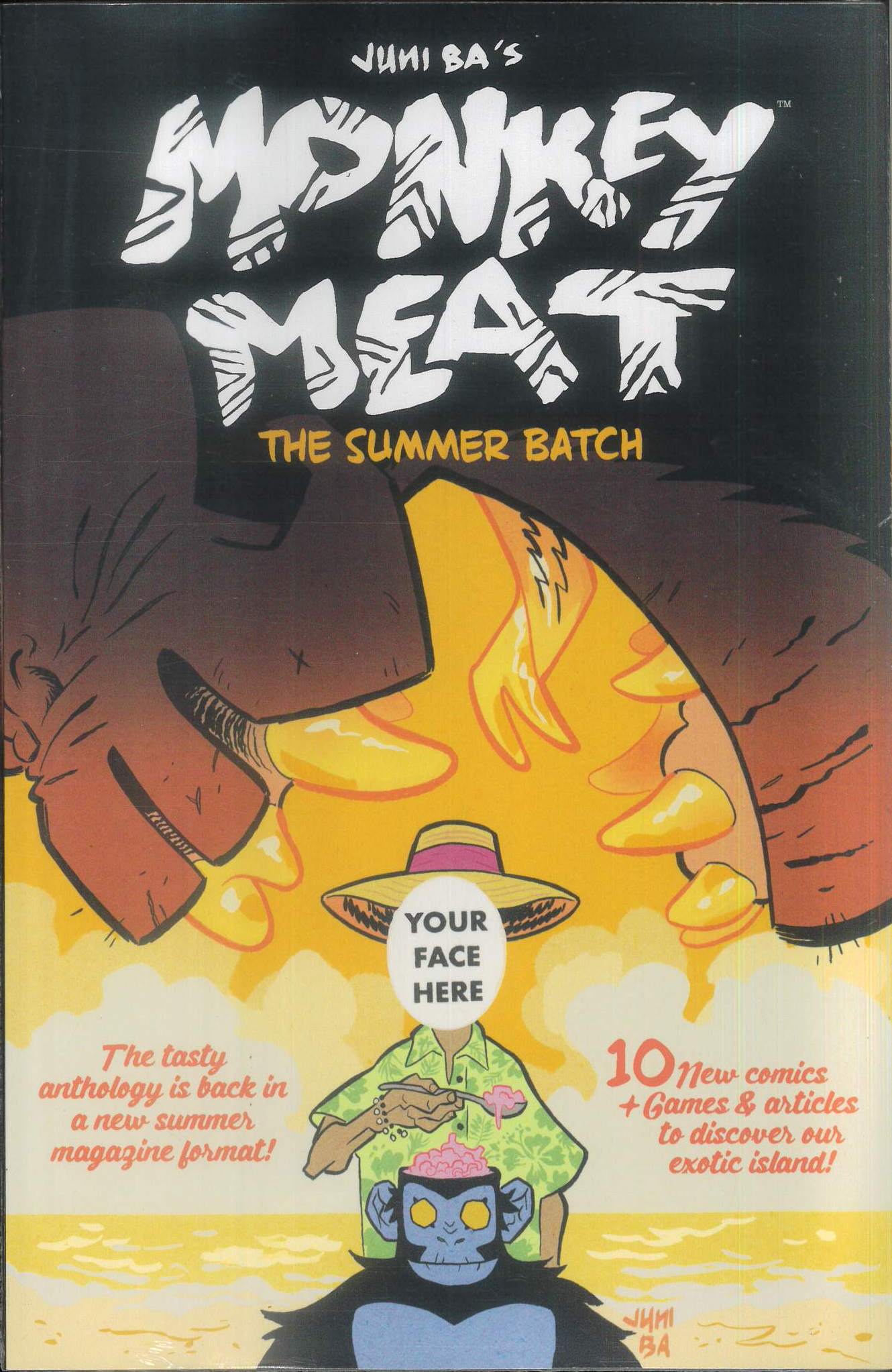 (W/A/CA) Juni Ba. Epic Dragon Ball Z-style action. Entertainment Weekly Written and drawn by Juni Ba (Djeliya, The Boy Wonder) with special authorization from the Monkey Meat Company, the tasty and critically acclaimed satirical anthology is back for a second serving in a new summer magazine format, with comics, articles and games to discover our land! The Monkey Meat corporation went from selling cans of ape meat, to becoming a hegemonic empire on the fantasy West African island they now rule. Corporate leisure parks, exploited company-towns or savage lands to conquer, the island offers it all, and conditions there arent just dystopian, theyre entertaining! Thats why the company decided to report local stories to you in comic form! And now summer is transforming our island into the ideal escape. Want to go on a vacation you can actually afford? How about embarking for a brand new set of amusing (and mentally scarring) adventures? Exotic locations, debt-collecting African spirits, a travel influencer aboard a giant robot, a family fighting a demon for their Mbnb and a superhero monkey suing the corporation that owns him. All these and more await our guests! Collects issues #1-5.